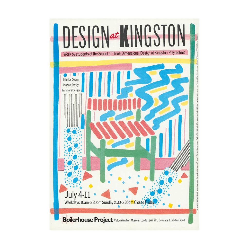 • This original archive print advertises Design at Kingston: a 1984 showcase of work by students at the school of three-dimensional design as staged in our first iteration as the Boilerhouse Project at the V&A (1981 - 1986).