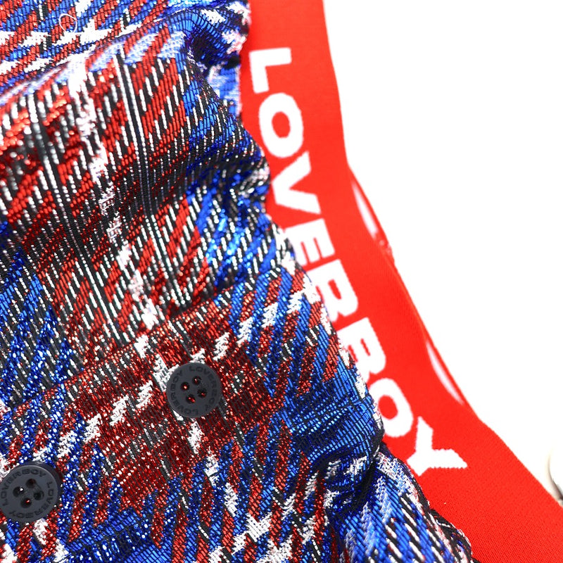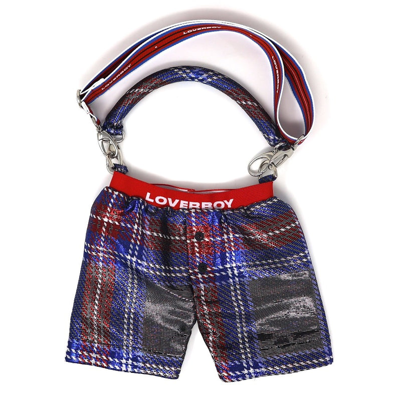 - This playful piece has a blue and red tartan print and features magnetic button closure and detachable handle and shoulder strap.